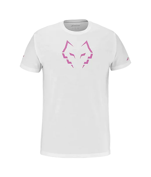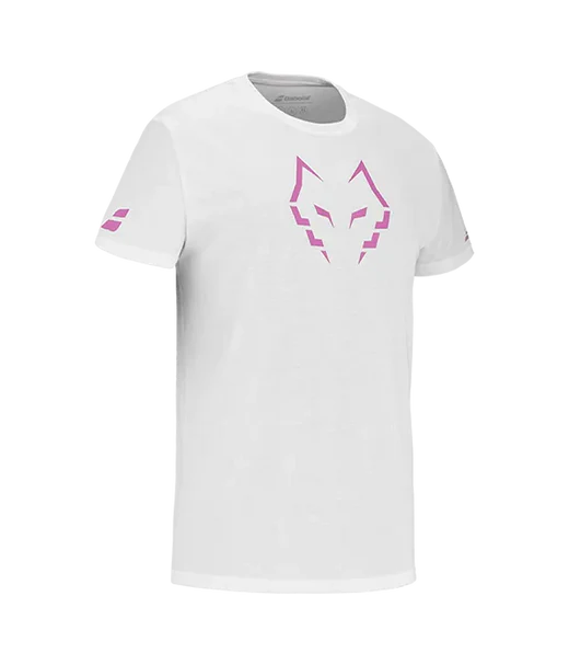 Camiseta Babolat Algodón Juan Lebrón en color blanco fabricada con tejido ligero 80%algodón y 20% poliéster. Una camiseta de la exclusiva línea de El Lobo con su característico logo en el pecho.