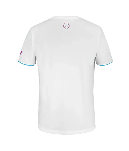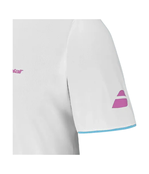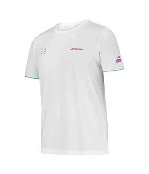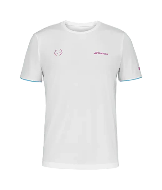 Camiseta Babolat Juan Lebrón 2025 blanca con firma de El Lobo. El tejido técnico de poliéster "Fiber Dry" utilizado en la colección Babolat se distingue por ser ligero y suave al tacto. Además, es fácil de cuidar y soporta incluso el uso más intensivo, adaptándose perfectamente tanto a entrenamientos como a competiciones.