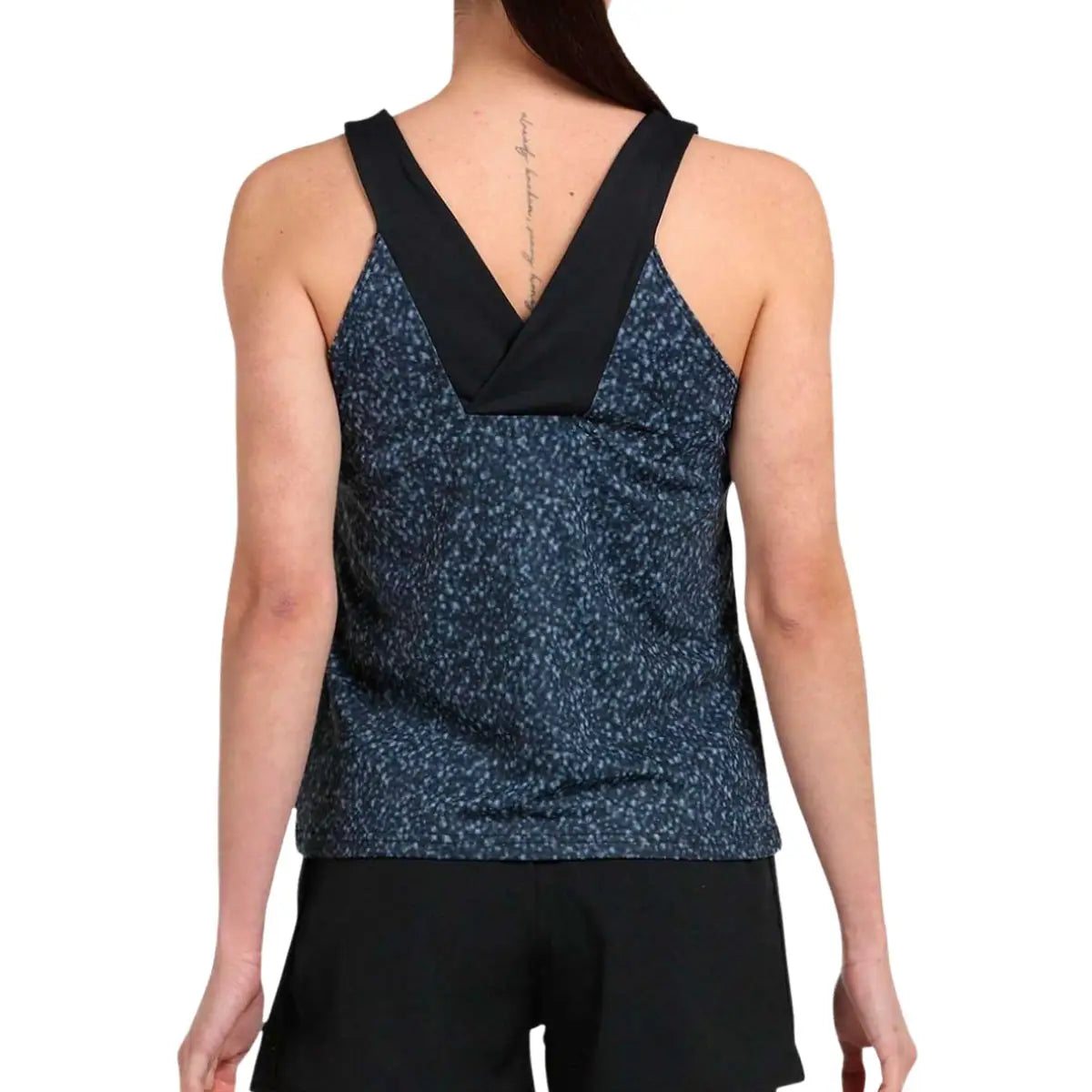Tank top de jersey elástico sublimado con tirantes y espalda semi perforada. Prenda con silueta más holgada, sin entalle en la cintura. Fabricado con tejido de jersey de poliéster elástico. Se le aplica la tecnología Drynamic, que utiliza los microfilamentos para reducir la humedad y ayudar a la transpiración.