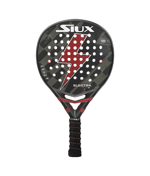 La pala Siux Electra ST3 Special Edition 2025, en tonos rojos y negros, es la elección de Franco Stupaczuk para los torneos más exigentes. Con forma diamante, carbono 15K, núcleo EVA Hard y acabado rugoso, ofrece una potencia explosiva y un control preciso en cada golpe. Además, incluye una muñequera especial y dos overgrips PRO perforados para una experiencia completa.