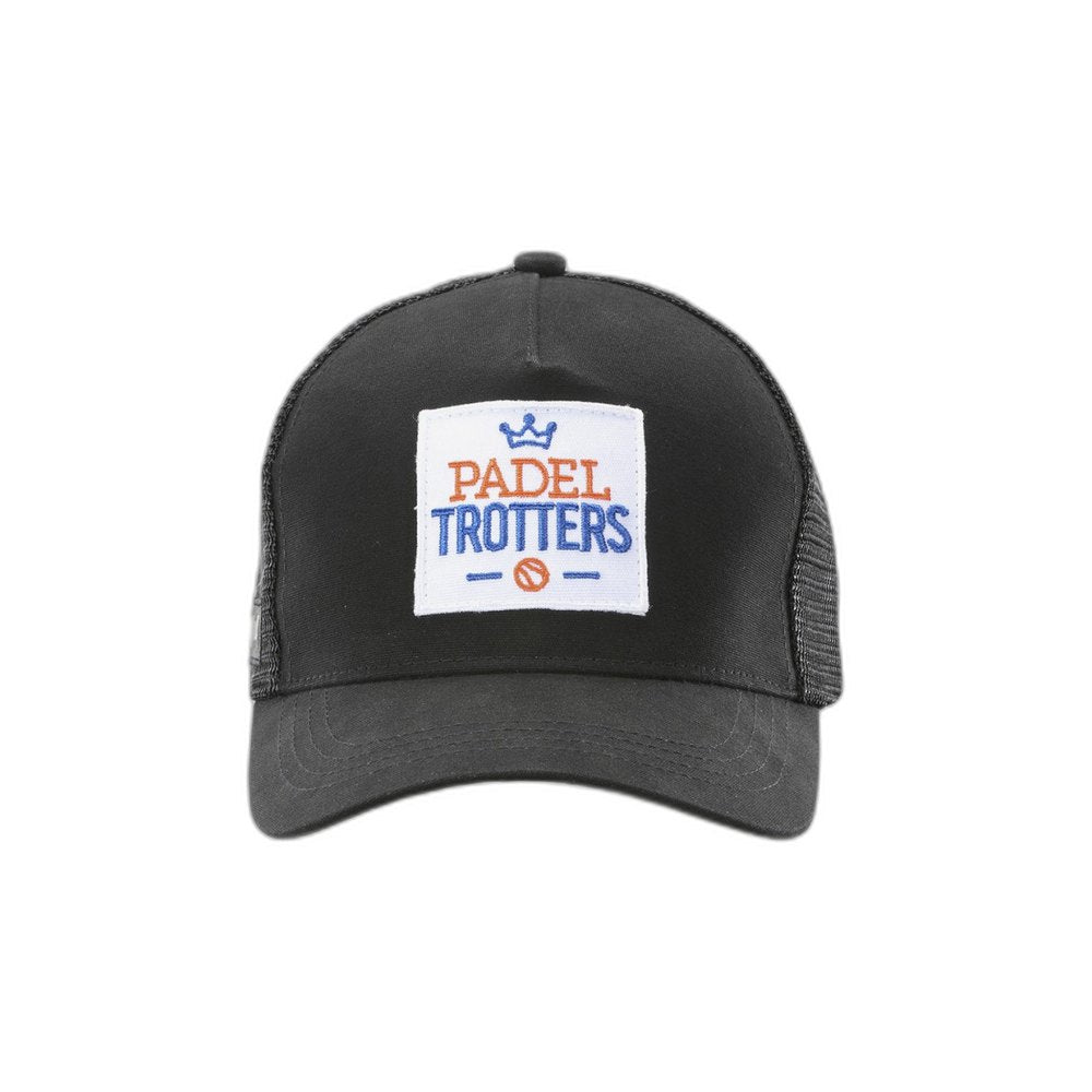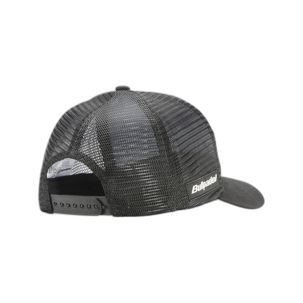 Tallas: una.Composición: 100% poliéster.Color: negro.Presentamos la nueva gorra Bullpadel apta para todas las ocasiones, desde un rápido partido de pádel en la pista hasta el más difícil entrenamiento. Es una gorra de poliéster de forma semiovalada, está compuesta por cinco paneles, el delantero es grueso y el resto es semigrueso, y con un botón en la parte superior, también tiene dos tiras de plástico en la parte trasera, una tira tiene pequeños agujeros y la otra tiene protuberancias para que puedas unir las dos, consiguiendo la medida ideal de la cabeza, para asegurar su perfecto ajuste.La visera de esta gorra Bullpadel está curvada para resaltar el estilo y el equilibrio que aporta a los rasgos faciales. En todos los colores, la gorra incorpora el logotipo de Padel Trotters en la parte delantera.