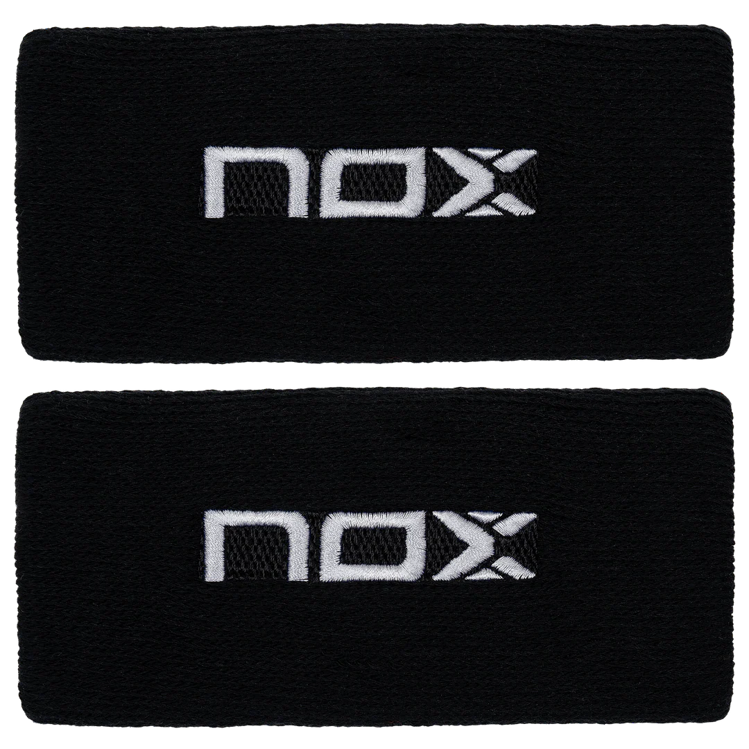 Mantén tus muñecas protegidas en cada golpeo con las muñequeras deportivas para pádel Nox en color negro con logo blanco.