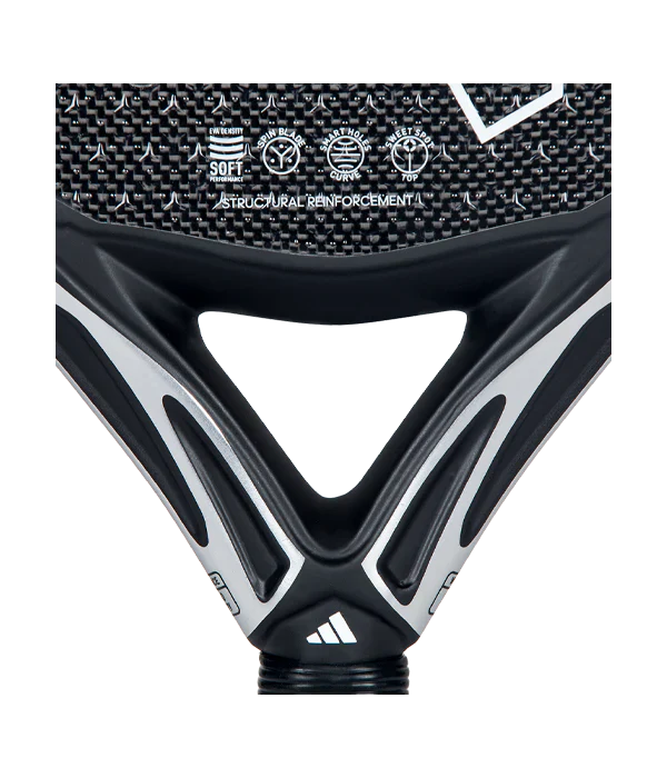 Pala Adidas Adipower Legend 2024, la pala Seba Nerone de máxima potencia. Una pala con goma EVA Soft Performance que mejora la salida de bola y con fibra 3K Carbon en la superficie. Esta combinación aporta un equilibrio total entre rigidez y tacto. Su forma Diamond Oversize facilita el juego de ataque, mientras que la tecnología de refuerzo Structural Reinforcement asegura una mayor durabilidad.