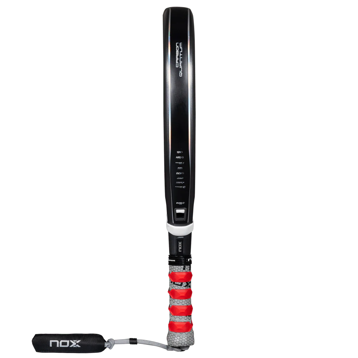 Fabricada con fibra de carbono 12K y núcleo HR3 Color Eva, proporciona un tacto sólido de dureza intermedia y una sensación de golpeo cómoda. Incorpora la tecnología EXCLUSIVE SPIN, con doble acabado rugoso: 3D hexagonal en el centro y textura de arena en el resto, mejorando el control y la generación de efectos. Además, la tecnología NOX Custom Grip® y el sistema Pulse System reducen vibraciones, minimizando la fatiga articular. Su innovador sistema Smartstrap® permite reemplazar el cordón de seguridad para mayor higiene, seguridad y personalización.