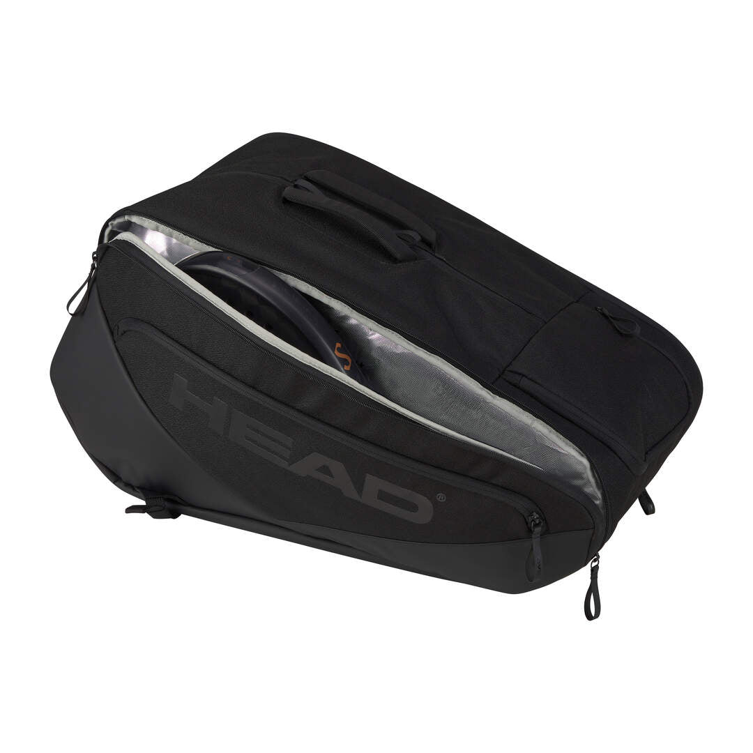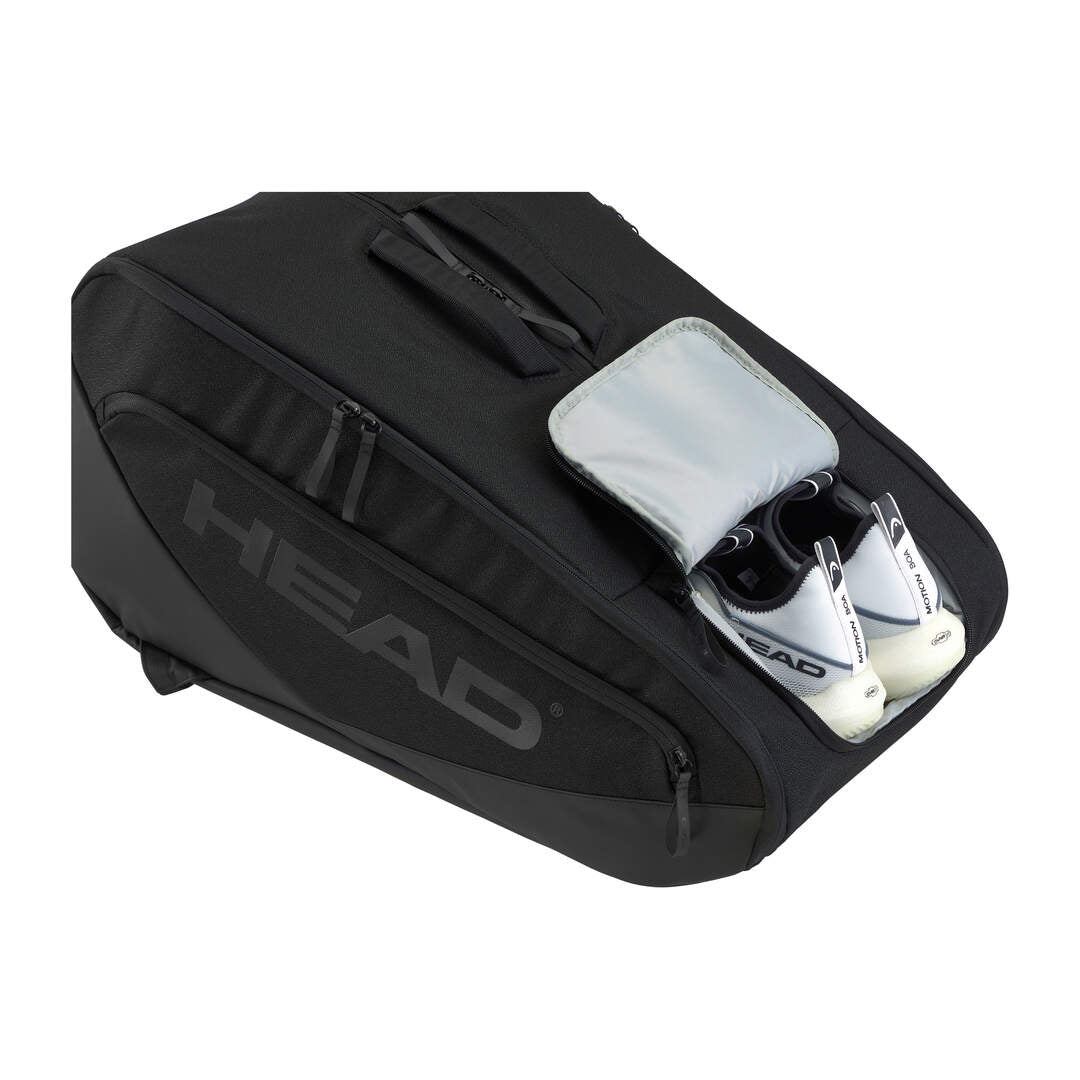 Los jugadores de pádel pueden disfrutar de su deporte favorito de una manera más sostenible con la elegante PRO X PADEL BAG L, nuestra primera bolsa de pádel fabricada con botellas de PET recicladas. Esta bolsa, ahora con una nueva forma y una estructura reforzada para ofrecer más estabilidad y protección, también ofrece una gran amplitud de espacio, con dos compartimentos exteriores para tus palas, uno de ellos con la tecnología CCT+ de control térmico para protegerlas de las temperaturas extremas. Además del compartimento principal y del compartimento para zapatillas, la PRO X PADEL BAG L incorpora dos bolsillos exteriores con cremallera para accesorios y otro más en el interior. Con el sistema de transporte de mochila, podrás llevar tu material cómodamente a tu próximo partido o sesión de entrenamiento. Como ejemplo de cómo HEAD está tratando de reducir el uso de plástico, la etiqueta está hecha de papel reciclado y viene unida a la bolsa con un cordel de cáñamo.